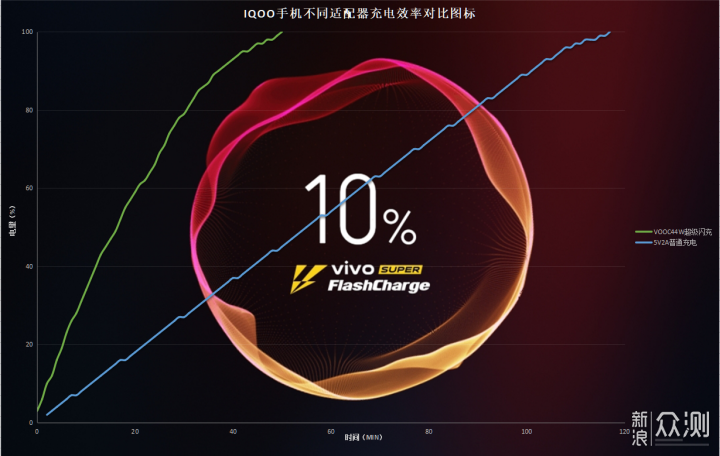 44W超快闪充技术的应用,使得iQOO手机的充电时间大幅度缩短,即使是使用了4000mAh的大电池,整个充电时间也仅需要50min左右,而且最喜人的是前期充电几乎是按照每分钟充电3%的比例进行的,充满一半的电量仅耗时20min不到。 当然了,充电时是不可能全程保持44W的大功率充电的,但是大于30W的功率还是保持到了电量50%左右,而这个过程仅仅需要20分钟的时间,超过50%以后电压依然稳定在9V,电流下降为3A附近,而在超过80%以后,电流继续下探至2A所有直至电量超过90%,电流下降至1A左右。