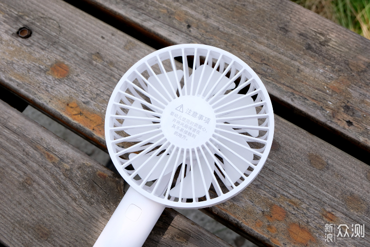 自己入手的白色,也很喜欢这种简单的颜色,小风扇为手持式的便携设计,整体形态为T型,上为风扇罩和扇叶主体,下为圆柱式的手柄。▼