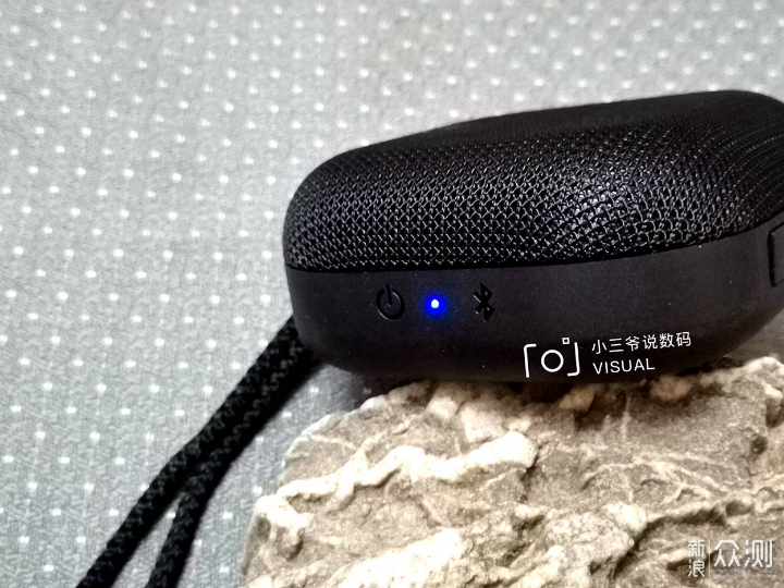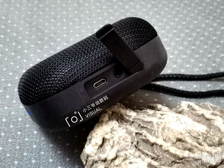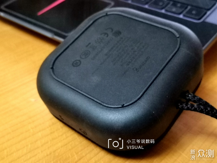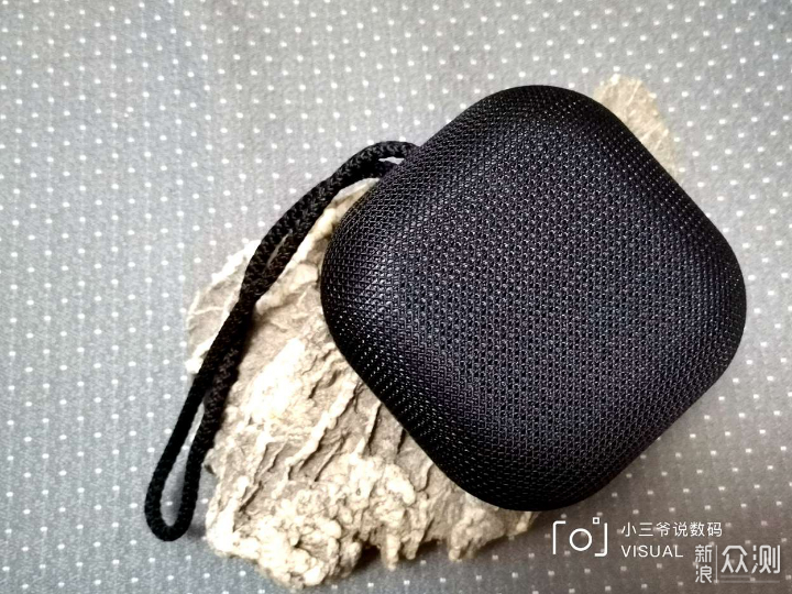 音箱整体呈正方形,边角处采用了曲面过渡处理,重量仅为240g,手感很棒。