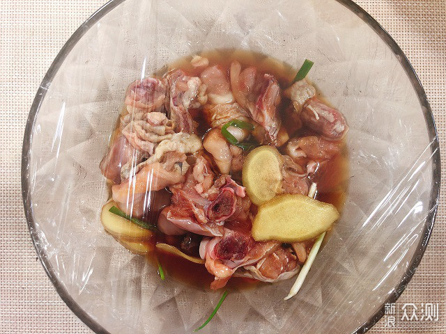 鸡肉斩块,洗干净,放入蒸锅中,加入料酒、酱油、葱段、姜丝、白糖、盐和适量清水搅拌均匀。包上保鲜膜,放入冰箱腌制一小时。 将淮山和枸杞放入腌制好的鸡肉中。那么调料工作基本完成了,接下来的工作就交给蒸烤箱去处理吧!是否能烹饪出我们理想的效果,我们一起拭目以待。