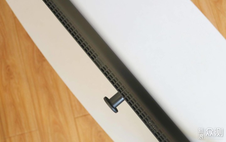 ▲由于机身的大部分电路板都集中在了下半部分的壳体内,所以在壳体的上方海信布置了整排的散热格栅,能够很好的将电视工作中产生的热量散去。