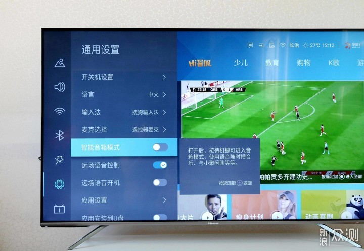 ▲由于全场景AI语音控制的加入,海信E5D还支持切换“智能音箱模式”,你可以用语音控制E5D进入智能音箱模式,也可以按待机键使其进入智能音箱模式。音箱模式下,我们依然能够通过海信E5D听听歌、听听广播或者与小聚闲聊,不仅眼镜得到了休息,省去了购买智能音箱的钱,而且关闭屏幕之后,电视的功耗要低了很多,还是非常实用的。 五、丰富的资源