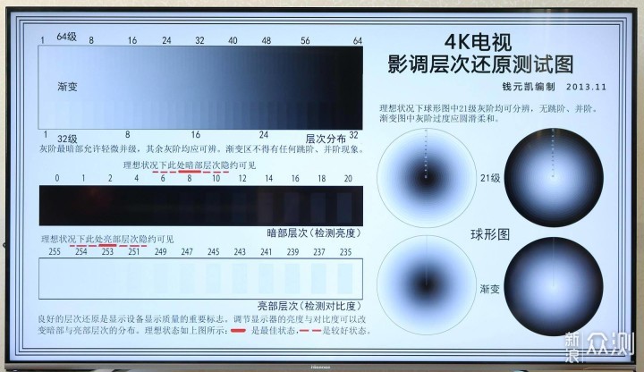 ▲灰阶测试中,海信E5D表现出了这个价位的出色素质,除了左上角的三个灰阶色块不太清晰之外,其他灰阶色块均非常清晰。