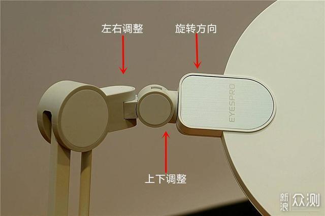 灯头部分有孩视宝厂家英文LOGO(EYESPRO),可以做上下左右旋转等多方向的调整。