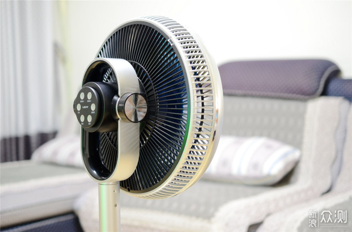 莱克智能空气调节扇为提升使用体验,在细节上做了一些升级,比如风扇整体尺寸更为小巧,从正面来看,羽叶数量7个,并且为流体叶片造型,在降低风阻、减少噪音,提高风量方面有很好的效果。