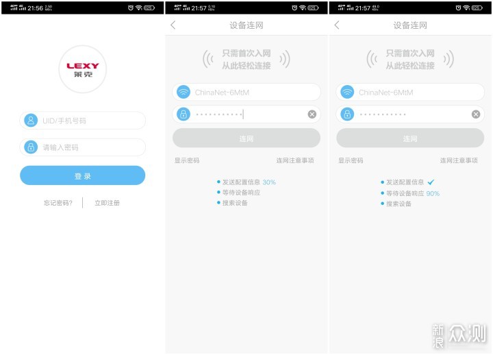 莱克智能空气调节扇既然称为智能,App操控是必有的功能,下载官方App即可,初次使用需要注册账号,然后按压操控面板上面的WiFi按键,根据提示完成App连接。