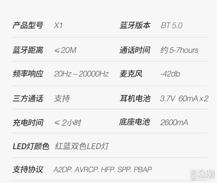 ▲X1在功能上已经可以说是非常的丰富,涵盖了很多主流的真无线耳机的大部分功能,比如说搭配充电盒(现在不搭配充电盒都不好意思说自己是真无线),智能降噪的加入,也是现在的一个亮点,我们越来越不能接受周围环境的嘈杂,影响通话影响听歌的感受。 防水功能的加入也意味着X1可以满足轻度运动者的需求,而全频动铁和蓝牙5.0则是很好的保证了X1的听歌和通话音效。参数上看来毫无破绽。