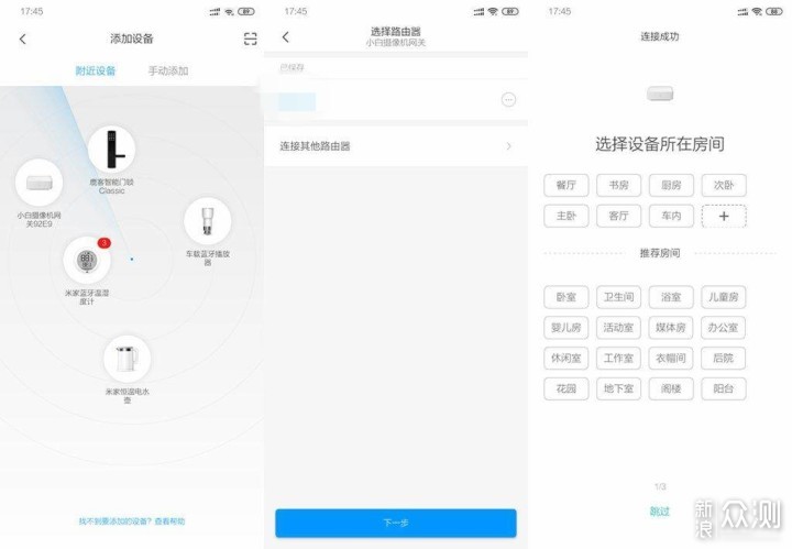 ▲通过查找周围设备添加网关,连接2.4G路由信号,设置所在房间位置,更改摄像头的名称。