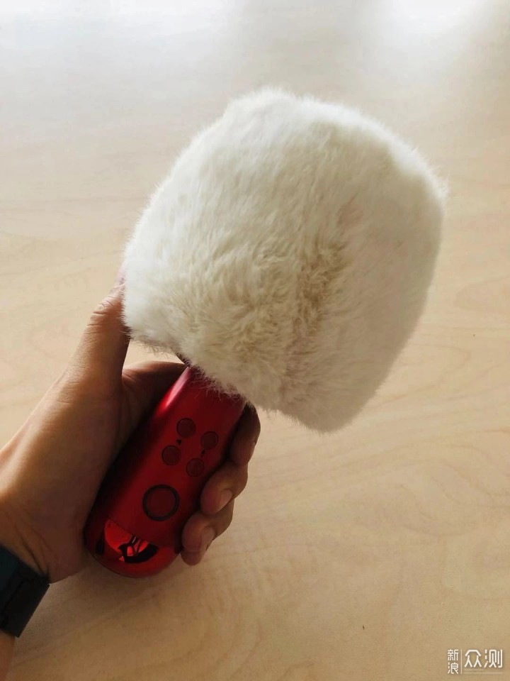这款麦克配备的是白色的防喷毛毛套,同款还有配备黑色海绵防喷罩的,不知上市会到底会如何配备。不过无论是哪种设计,都是用来对杂音进行过滤以及防治口内分泌物飞溅到麦克风上的,一方面保证机器使用寿命,另一方面保证演唱及录音效果。不过建议厂家提供后期耗材更换,毕竟产品规格较特殊,后期购买第三方产品可能比较麻烦。