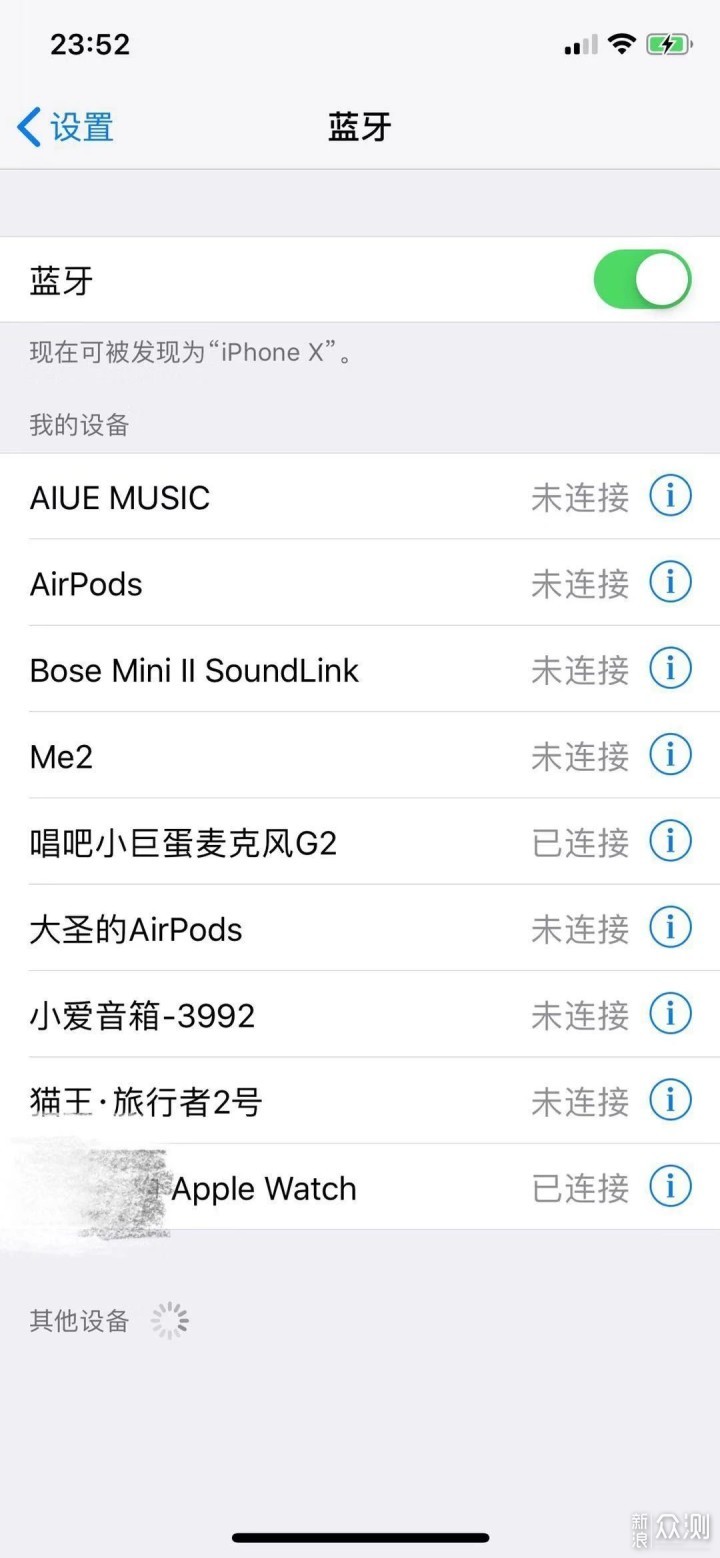 首次使用,需打开手机蓝牙并搜索设备,点击“唱吧小巨蛋麦克风G2”进行连接,之后每次开机即可自动识别并连接。