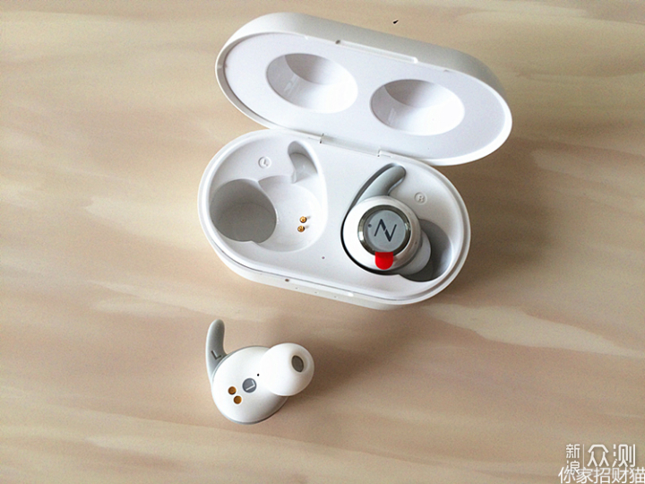 招财猫上看、下看、左看、右看,总想在充电仓上找出点卖点来!充电仓的开关键?跟N2似的能当充电宝?看着都不像啊,这个充电仓就1个充电口,并没有输出口;电池仓外面除了一个指示灯和指示灯上面的开关电池仓盒盖的小凹槽设计外啥也没有啊!说明N1S的电池仓就一个市面上主流的作用,为蓝牙耳机续航提供后勤保障。