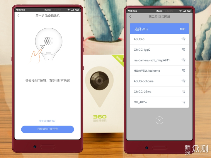 ▲此时App提示长按摄像机背面的设置键,直到听到“滴”声响起,然后进入Wi-Fi网络选择界面。