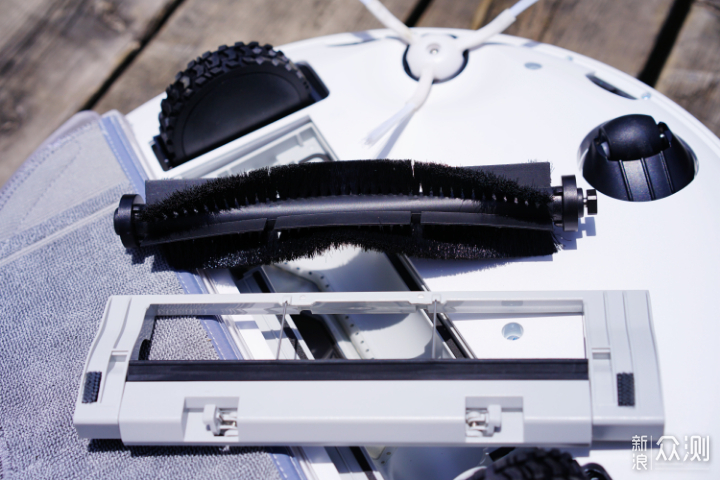 主刷采用的是胶棒和尼龙毛刷组合的方案。胶棒扫起毛发同时防止长头发勒住毛刷,影响毛刷清洁能力。还是要定时查看清理主刷毛发,不然会越勒越紧割坏橡胶。