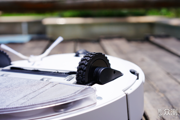 驱动轮是有弹性的,具有传感器,当扫地机被拿起、或架起来时轮子悬空弹起触发传感器,App就会弹出通知。S7的驱动轮,驱动力很大,越障能力很强。