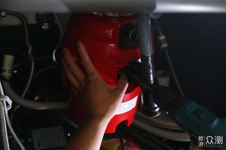 如何,是不是大型蜘蛛网现场既视感。所以在买垃圾处理器之前我就说一定要找能让师傅先上门测量的,可以帮我改造的,甚至说如果没法装可以同意我退货的。 贝克巴斯的客服对这些要求答应的很干脆,而且我一直信奉只要能不让我动脑子的服务都是好服务,花钱办事搞定就行。所以贝克巴斯的安装师傅第一次上门的时候看到我家这情况都愣了,楞了两分钟后,首先先打开包装拿出E70,塞到水槽下柜子里试了试,很遗憾,就差将近一公分,没办法,一马力比市面上常见的垃圾处理器功率都要高,肯定要大一点了。然后师傅问我,你家前置还用不用,拆了就能装。结合小区去年的水管维修保养更新,寻思了下,我还是决定拆掉前置挪地方,装垃圾粉碎机。