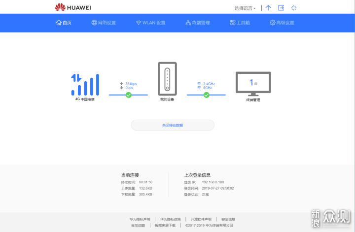 2、4G百兆全网通 华为4G路由2 Pro支持3大运营商的所有网络制式,无需担心网络制式不匹配的问题,想用移动就用移动,想用联通就用联通。楼主实测了移动及电信的4G网络,都可以完美支持。
