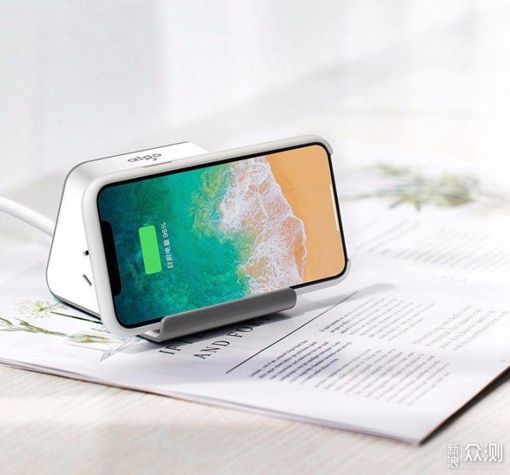 一般市场的很多无线充都采用的平面充电,而这款充电插座特别设计了一个倾斜角支架,手机放置之后很自然形成一个倾斜角度直接贴合在无线充电的感应器边上,完美贴合,保证了充电效果。我们都知道无线充需要线圈部分耦合才能达到最好的充电效率。