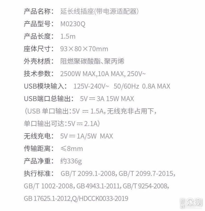 这款桌面充基本是涵盖国标充X2,无线充一组,USBA接口3,意味着可以同时从6种设备。而同时也兼顾USB 5V 2A,220V需求,你需要的我都有。 先看官宣的SPEC,看看这个是工程师的习惯,才能知道这款产品具体支持的最大功率,是否支持快充,无线充最大功率,等等都可以在电器规格上看出来,这个是做不得假的。