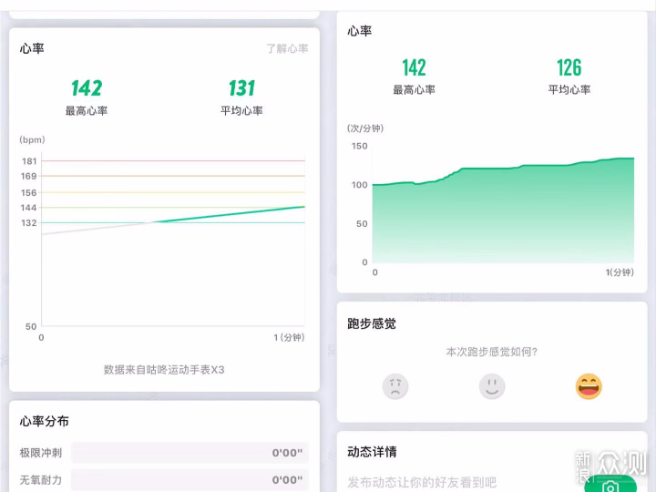 一圈下来,跑步数据如下,轨迹里程相差不多,(由于同时使用两只手表,开始和结束需要先后控制,所以时间上略有差异)心率上二者也非常接近!
