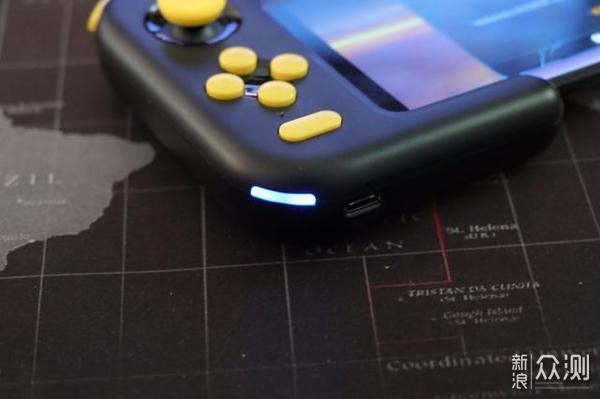 包装内含有一个手柄、一根Type-C充电线、一个说明书,另外随手柄还附赠一个激活器。 外观以及配件北通H1游戏手柄的外观以黄黑搭配为主,整体颜色比较显眼靓丽,每个独立按键都是用黄色标注,非常显眼也比较容易找到按键的位置。放入手机的位置采用了橡胶材质,橡胶材质上还采用了斜纹的处理,不仅看起来美观,而且还能提高防滑程度。北通H1手柄的上方是LT键和LB键,这两个按键对应的是左手食指的操作,使用下来食指对这两个键的掌控很容易。 摇杆键即L键,是用来操纵角色移动的键,这个键的表面加上了一层类肤材质,摸起来很是舒服。