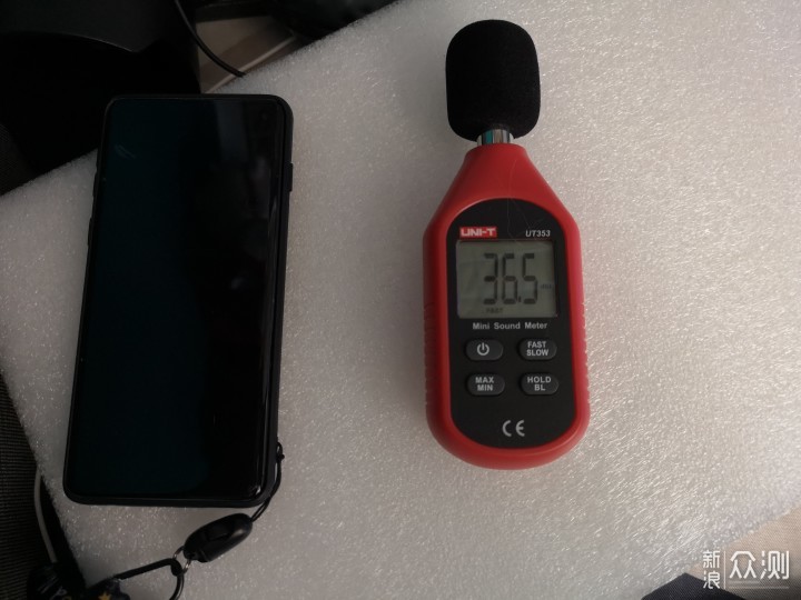 而在0.5-1米我们坐的沙发上,噪音就几乎听不到了,只有36左右。