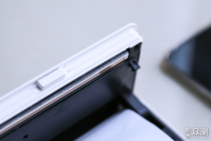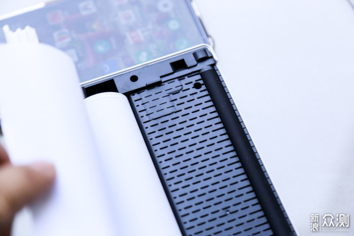 ​机器是卡扣固定,用力按压就能打开。机器内部的构造比较简单,用户只需把打印纸放入就行。机器下半部分的前端是滚动轴,上端的前部是细小的金属锯齿用来切纸。 喵喵机App​