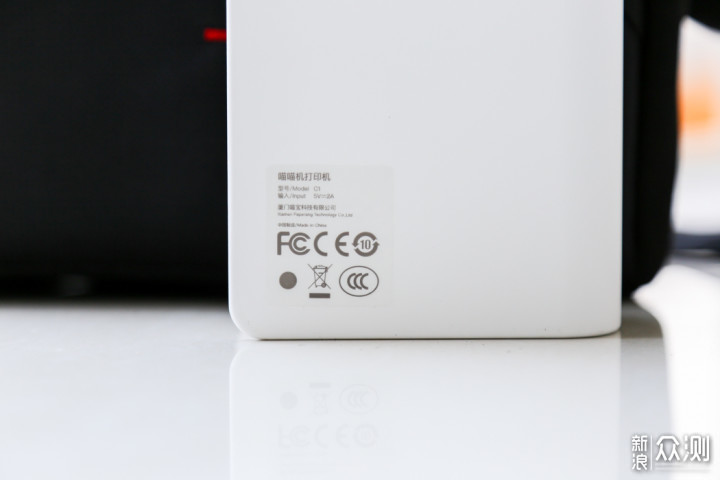 ​喵喵机MAX机身为白色,外观设计很是简约,还荣获了2019 CES创新奖。正面只有商标,左侧有一条开槽做装饰。背面是产品信息,电源输入为5V/2A。尺寸不算大,可以轻松装到书包里,不过份量不算轻。​