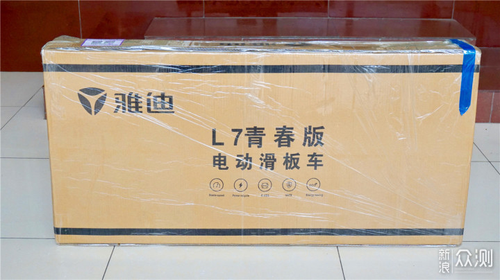【简单开箱】收到物流快递发来的快递时还是被这严实的包裹震惊到了,纸箱最外面有一层塑料防水,纸箱衔接处的胶带密封的非常仔细。这款包装纸箱是L7青春版专用包装,并且在封面有此款电动滑板车的特点展示和与产品相关信息的说明,方便用户在收货时查验产品的相关信息。