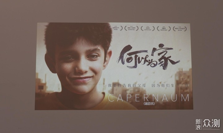 ▲迫不及待的开机了,图中投影距离1.5米,画面大小60寸左右,用户可以根据自己需要在3米内的投影距离上选择,3米距离对应100寸画面,距离与画面大小成正比,与清晰度和亮度成反比,根据自己喜好来取舍吧。上面这幅图是在白天自然光线的室内,在白色墙面上呈现的效果。