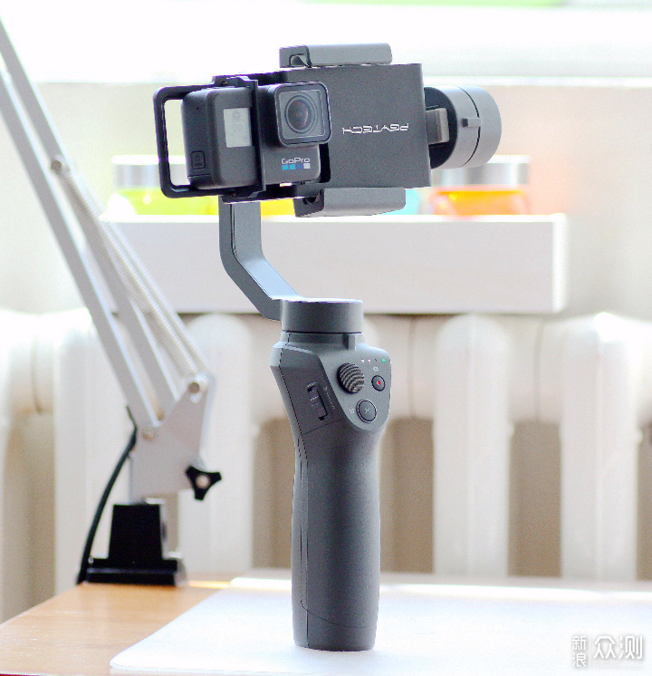 灵眸OSMO2代手机云台除了适用于手机,当然也可以适用于GoPro运动相机系列,不过想用GoPro就必须按装一个转接板才能使用,在使用过程中建议大家把电子防抖关闭切换成机械防抖。灵眸OSMO2云台+GoPro运动相机,在GoPro统用中云台电机发热量会有一定增加。