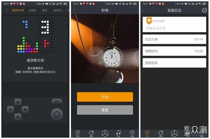 ▲App除了支持作者的自由创作像素作品以外,自定义闹钟,分组闹钟,睡眠睡前音乐,时间安排,定时提醒。玩俄罗斯方块,家庭纪念日,秒表。可以想到的功能基本都能涵盖,我其实比较喜欢的功能就是睡前音乐,打开之后可以在音箱端播放一些催眠音乐,集成了洞穴,萤火,冥想,海滨,夜想等各种场景。