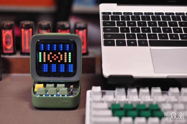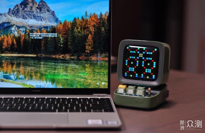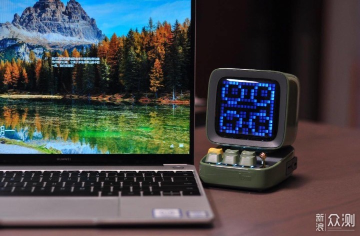 ▲而我日常使用的是一款matebook13的超薄本,就是喜欢它的轻薄便携,也是日常携带的本子,看看Ditto卖萌的表情没有。是不是感觉心情好了很多,而且还是不断的在卖萌。瞬间感觉工作的时候即使不播放音乐看着它不断变换的像素也是非常的愉悦。 购买建议这款蓝牙多媒体音箱经常有朋友爆料推荐,好价应该是在499,算是不错的价格,这个产品送女朋友那是再好不过了,不过我没有女朋友。 我拿回来第一时间被两个女儿抢走了,三岁的小丫头晚上居然要抱着睡觉。。。。她懂啥,就是知道好看,好玩。而且随机器附送的像素帖纸全部被她拿去贴完了,我其实很心疼。但是也没有办法。 如果你希望你的办公桌或者是自己的书房阳台工作者多一个可以“变脸”的小助手,那么这款Ditoo绝对可以改变你的心情,可以闹钟,可以助眠,可以定时,可以收听电台,可以变换各种喜欢的表情包,可以对手机说语音,可以接听电话,可以接受手机的App提醒,小小的身材,而功能多的令人发指,点音大概是我见过功能最多的App。