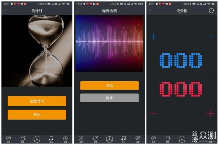 ▲支持倒计时,支持噪音检测,可以检测周围的环境噪音。支持计分板,这个功能可以用在孩子做游戏,家庭比赛的时候。