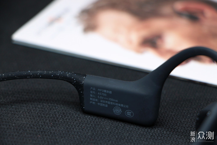 左侧内部容纳的电池元件使得就非常简单了,所以韶音科技选择在内侧附加AS700相关简单的信息。