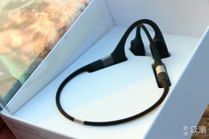 极速开箱 | ◆撕去包装表面一次性封膜,韶音AS700外包装主要用硬制瓦楞纸材,入手跟手机包装手感类似,包装以白色打底,黑色字体相间,然后正面配以人物耳机佩戴实图进行展示,当然最醒目的莫过于就是韶音骨传导耳机跟传统耳机在入耳方式的表现形式不同!