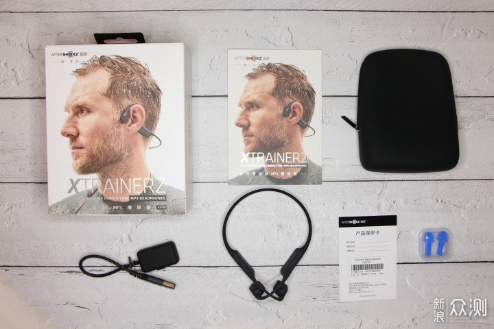 耳机包装采用内置套盒形式,内层包装纯白打底,正面炫银“AFTERSHOKZ”进行了单独设计,开关设计成侧面磁吸展开式设计,相比天地盖或者抽拉式设计更具有人性化,而且在底部还加了一截棉纤方便用户使用,而打开后可以看到图案为游泳时运动员佩戴的实图,所以从这个使用场景就能直接判断出AS700骨传导耳机主打的卖点就是水下使用!