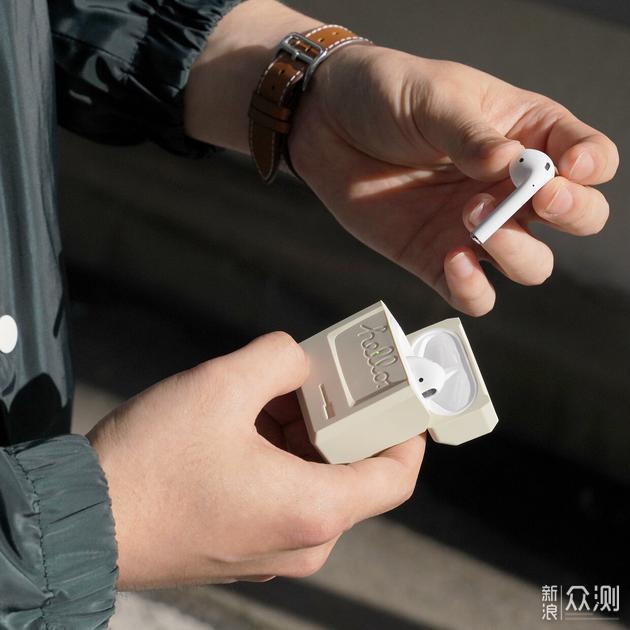 美国数码周边配件厂商elago近日推出一款为AirPods设计的皮套,套上这皮套的AirPods被伪装成经典的Macintosh。