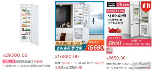 ④搪瓷内胆 蒸烤一体机兼具蒸箱和烤箱的功能,近年来备受青睐。具有上下独立控温的蒸烤箱,可以保证食物的口感和丰富度。而国外品牌普遍使用的搪瓷内胆更有利于油脂的氧化分解,可以给后期的清洁省下不少时间。至于功能差异和价格,就得看自己的实际预算和功能喜好了。 2.嵌入式冰箱 利勃海尔、博世以及daogrs的嵌入式冰箱都美观实用,值得关注。