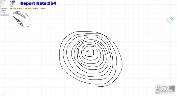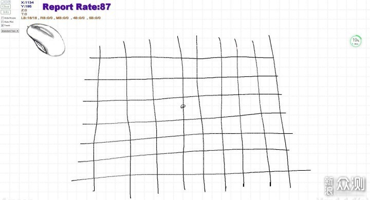 三、性能篇通过上述简单的配置后就可以对上手体验这款鼠标的性能了,在这一章节主要通过两款测试软件对Razer Viper进行详细的测试,先来看看经典的蚊香图和井字图,通过观察这些点的位置和间距可以看到Razer Viper并没有出现丢帧现象,滑动轨迹也非常平滑均匀。