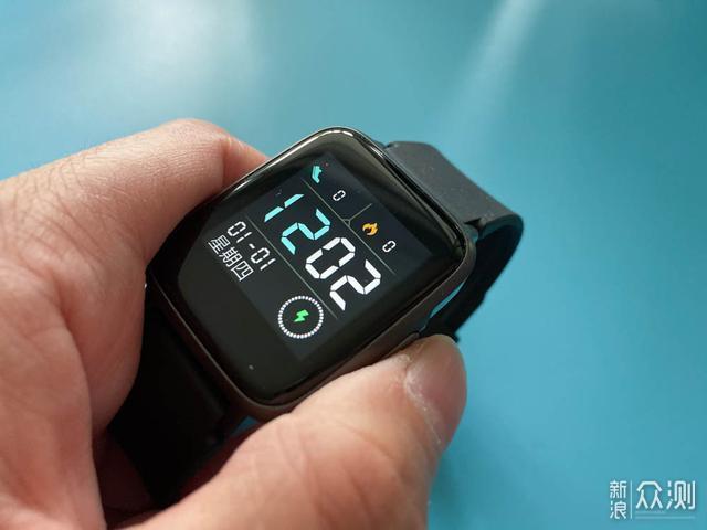 取出手表,可以看到手表是方形的,中间一块是触摸和显示区域,四角是云弧形。