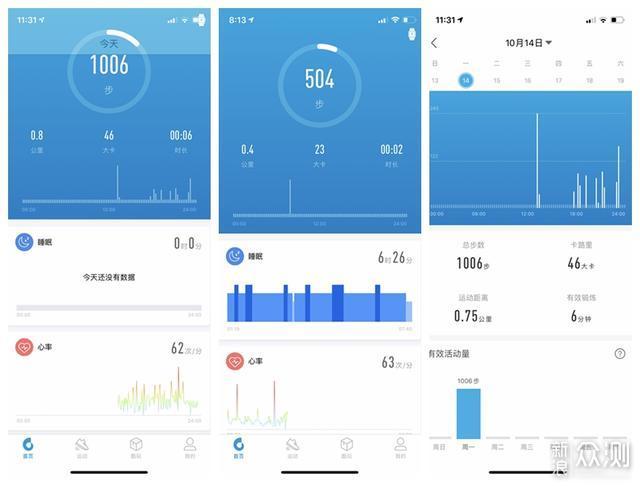 智能手表,都需要安装App获得更好的历史资料和各种设置,所以这款手表也不例外,扫描安装App,绑定之后就可以使用了。 主界面比较简洁,可以按到步数、公里、卡路里和时间,下面有睡眠和心率图标,更可以查看历史记录,查看任何一天的数值。
