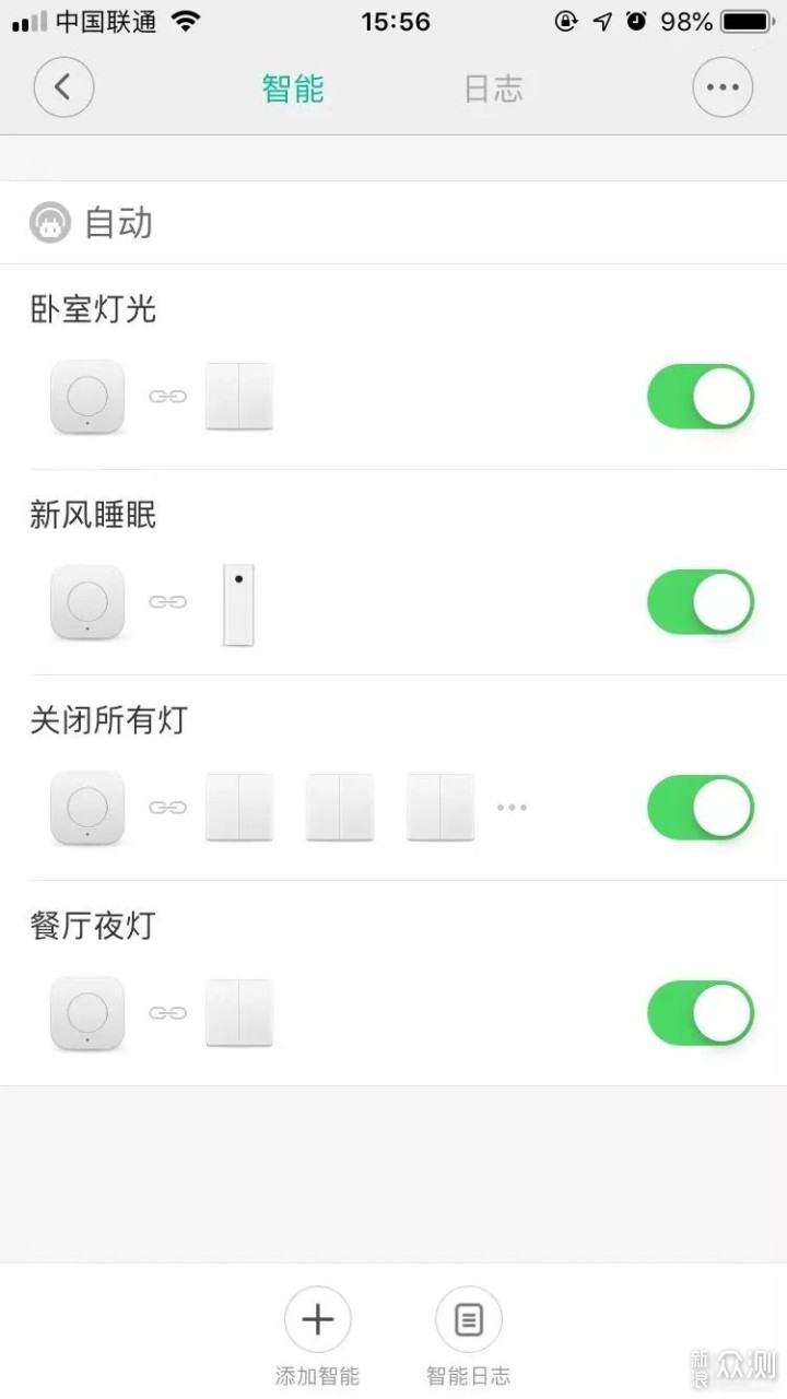 homekitApp:可以利用网关连入使用,使用但是由于我觉得还是米家App好用就没用,下一篇文章会详细讲讲。 总结:1、单火开关或者零火开关可以联动无线开关,所以可以实现开关布置的双控,利用这点可以节省下很多布线费用。 2、每个布线的开关都可以连接多个无线开关,这样可以把平时很难实现的多控轻松实现。(多控开关特别贵,而且布线也很麻烦,目前还没发现单一开关的对接上线) 3、有线开关可以改为无线开关使用,但是改后有线的功能就失效了,所以如果有的地方需要一个单键和一个无线的时候可以用一个双键来代替,价格便宜还简洁。 4、无线开关的全屋控制依赖于网关,所以会有一定的延迟,这点需要习惯,不要看没关就连续点。 5、灵活结合门窗传感器、人体传感器、指纹锁、智能音响等来实现开门亮灯、起夜夜灯、语音开关灯等各种智能化场景。