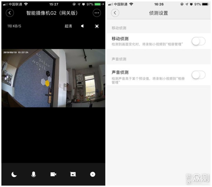 1、实时可以观察家中的情况并同时检测移动,可以在出差时设置上检测移动报警。左边是监控画面,右边是移动预警,可以在发生移动时把消息推送手机。