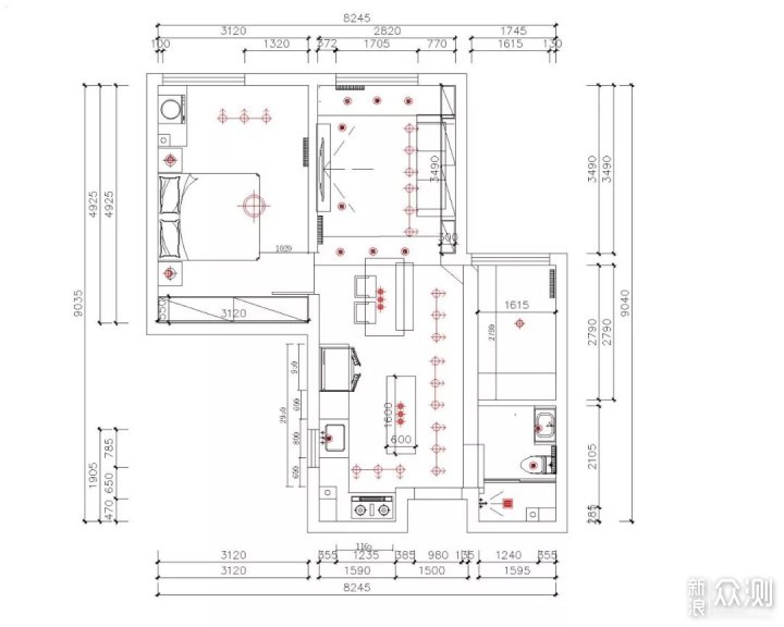 餐桌旁布置一个单火双键开关,分别控制餐桌和次卧的灯光,因为餐厅就在全屋的必经之路,即使不亮灯也不影响照明,主要氛围使用所以就没有多布置开关,但是可以通过两个遥控开关实现关闭灯光。 4、客厅灯光: