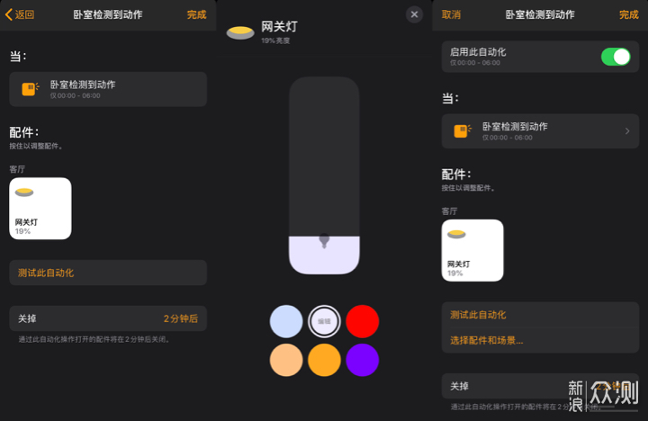 如此一类一个智能场景则设置完成,每当晚上熄灯以后如果要上厕所,为了不影响到媳妇休息,起床后自动亮起夜灯,随后又自动关闭夜灯,悄无声息。