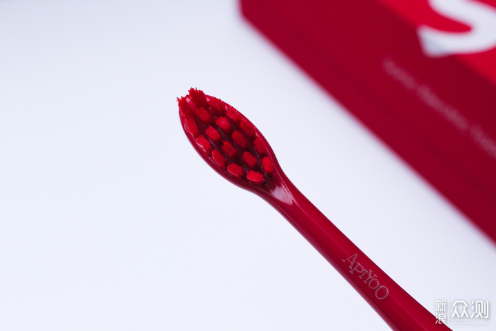 刷头同样是红色系,材质为杜邦材质,侧面看形状为波浪状。