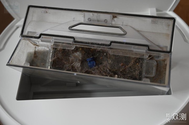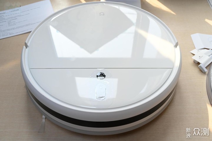 和以往几款米家扫拖机器人一样,米家扫拖机器人1C也采用了顶部掀盖设计,可以直接取出尘盒,这一点在日常使用当中比较方便,更加易于倾倒尘盒,对于需要深入清洁的房间来说就更加便捷了,当然,尘盒本身容量不小,有着600毫升的容量,只要不是遍地瓜子壳,否则足以确保一般房间的自动清洁需要,因为在智能路径规划的指导下,这台扫地机不会顽固的重复清扫,而是能够高效率的对全屋进行清扫。另外,在设计上与之前的不同之处在于,这款扫地机的盖子没有把开关和摄像头覆盖到。因为这款扫地机吸力比较强,所以绝大多数掉落在地面的细小物件都会被吸进尘盒,所以在倾倒之前最好先检查一下有没有遗落在角落的重要物品被1C捡到了。