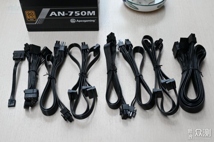 因为是全模组电源,所以对日常使用影响比较大的细节就是接口的配置。这款AN-750M提供了3个8P接口,4个6P接口,以及必要的主板供电接口。至于线缆方面的配置,也是和电源上的接口一一对应。仅从这款电源的接口配置来看,其表现并不算出色,所以为了能够在400的价位上提供750W全模组的配置,艾湃电竞也是做了一定的取舍。