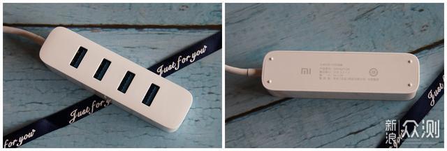 小米USB3.0分线器采用的是PC材质,亮面工艺显得质感不错。查阅了随机资料,四个口均为USB3.0输出,传输电流合计为900mA,传输速率折算下来约为500Mb/S。基本上可以理解电脑端输出可以做到5V1A的样子,传输数据主要还是看电脑和设备性能,毕竟500Mb/S的上限传输速度是个天花板。