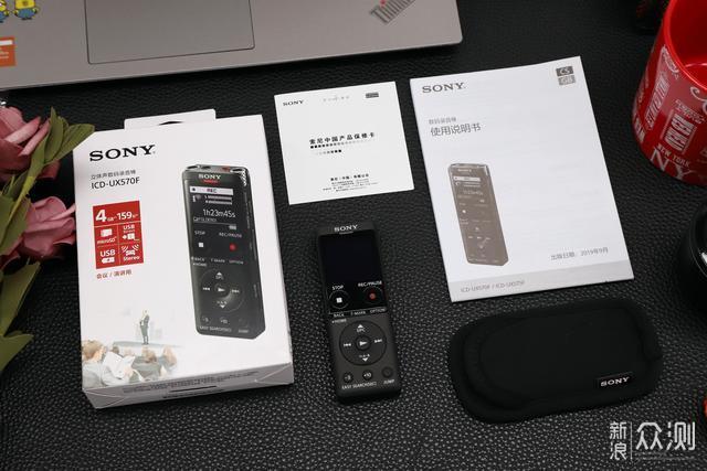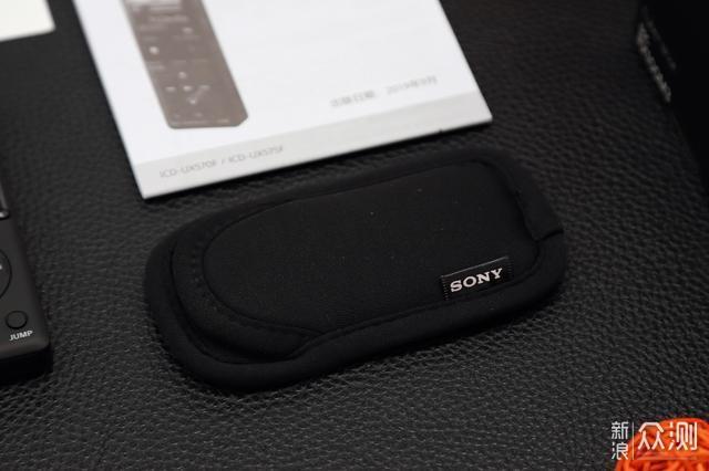 全家福 ICD-UX570F的包装盒除了录音笔本体以外,配件方面有保修卡,说明书,产品售后联系卡,便携包一个,与上一代ICD-UX560F配件相同。不过,我看很多国产录音笔还在赠送原厂耳塞,虽然现在手机早就不送耳机了,但是索尼的原厂耳机还是值得拥有的,哪怕几十元也行,所以想起了一首歌:“背对背,默默许下心愿,看远方的姨夫,是否听得见,它一定实现”。虽然烧友都不缺耳机,但是对于专职会议采访的人员,现场插耳机听取一些信息,还是有用的,毕竟现场有可能过于嘈杂,或不适宜打开录音笔扬声器直接外放。